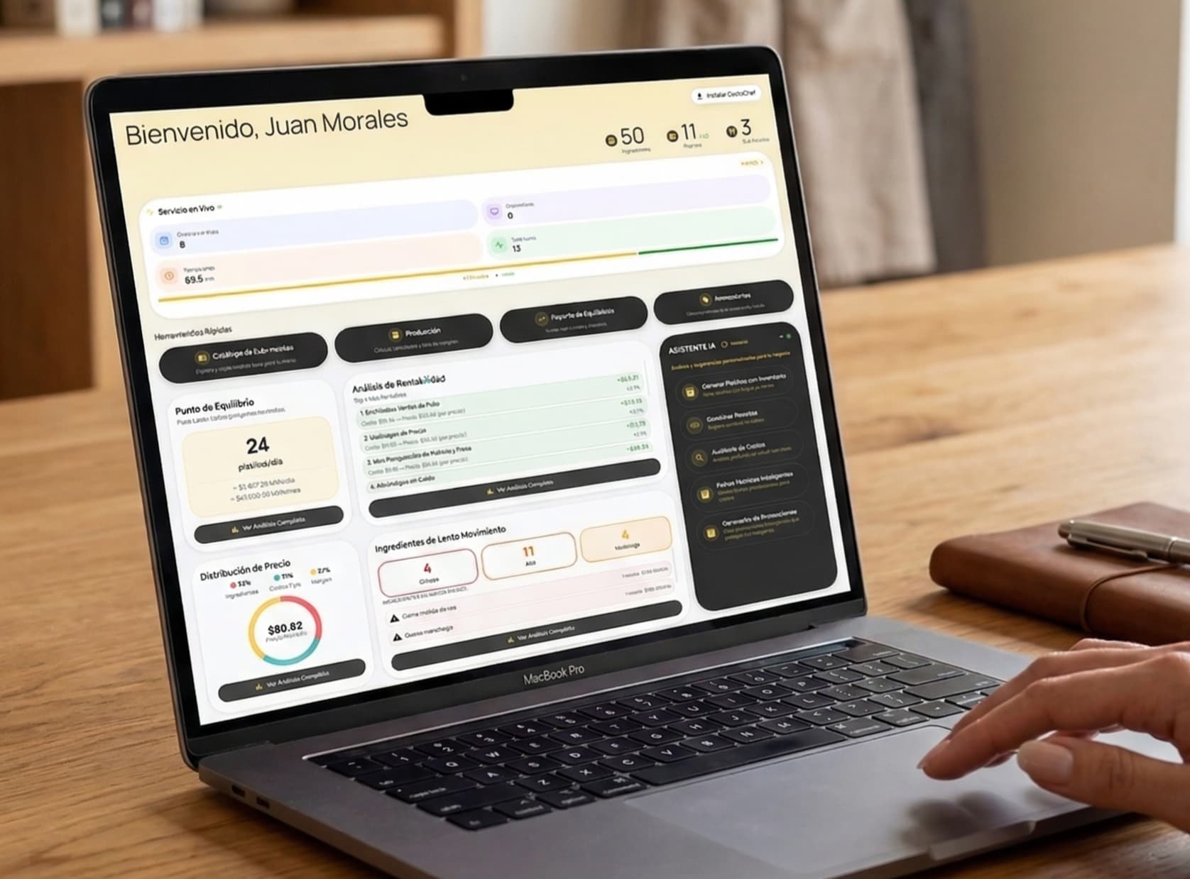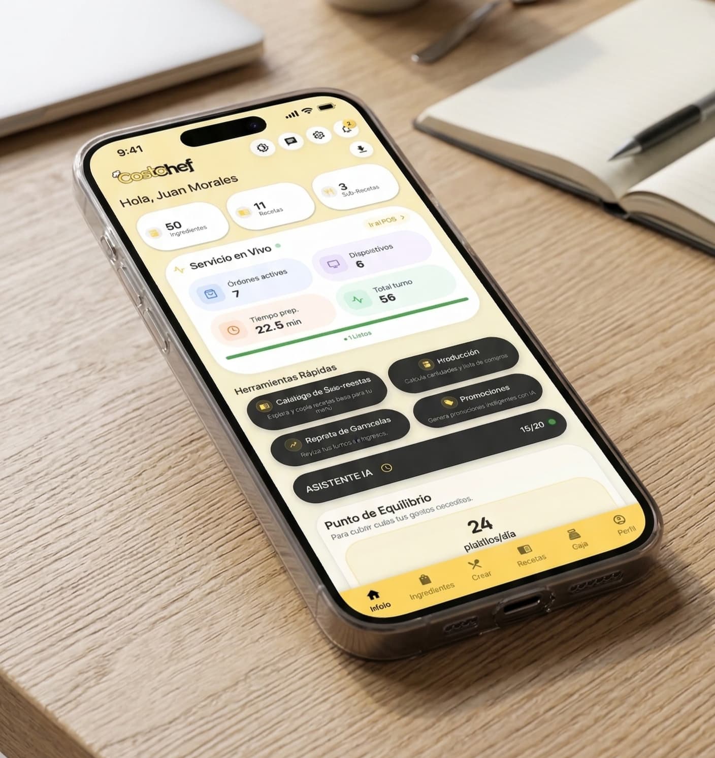 CostoChef es la app para costear recetas que te dice, en tiempo real, cuánto dinero estás ganando con cada platillo. Sin calculadoras. Sin Excel. Sin adivinar.